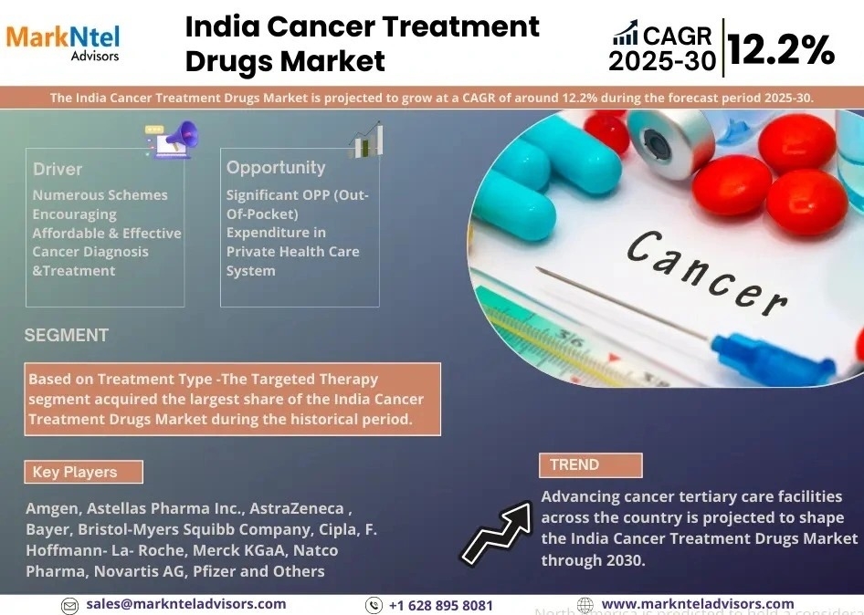 MarkNtel Advisors, a leading market research and consulting firm, has announced the release of its latest study titled India Cancer Treatment Drugs Research Report: Forecast (2025–2030). This report provides a detailed assessment of the India Cancer Treatment Drugs, covering its evolving dynamics, emerging trends, key growth drivers, major challenges, and competitive landscape.