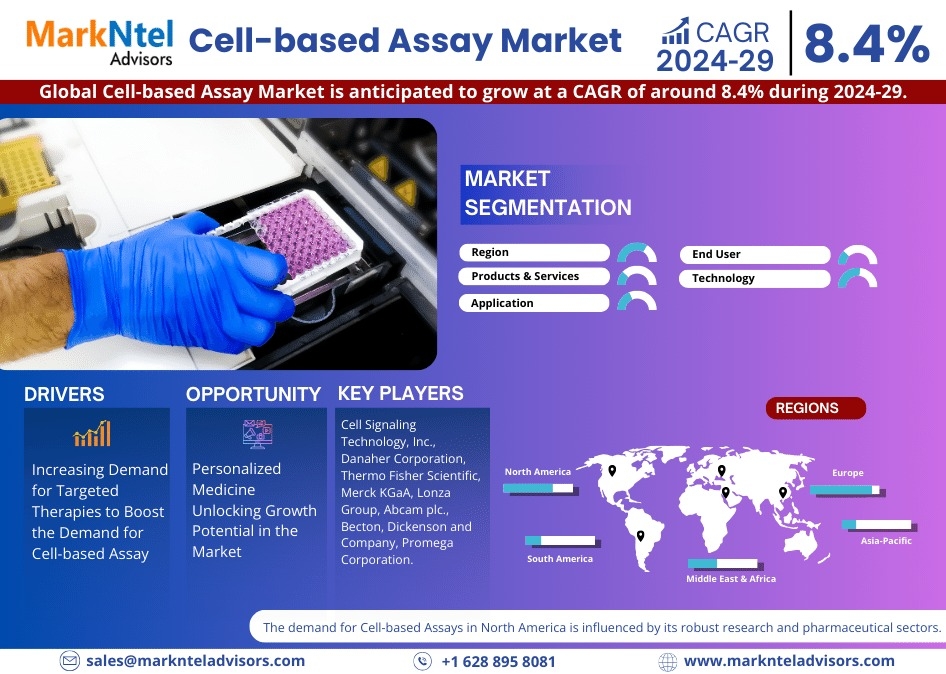 MarkNtel Advisors, a leading market research and consulting firm, has announced the release of its latest study titled Cell-based Assay Market Research Report: Forecast (2024–2029). This report provides a detailed assessment of the Cell-based Assay, covering its evolving dynamics, emerging trends, key growth drivers, major challenges, and competitive landscape.