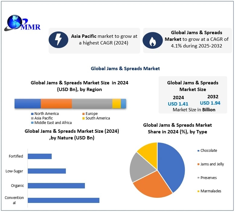 Maximize Market Research, a prominent business consulting firm, has published an in-depth report on the Jams & Spreads Market .The study delivers key business insights such as demand trends, pricing analysis, and a detailed review of the competitive landscape. It thoroughly assesses the current market conditions and includes forecasts for the Jams & Spreads Market through the year 2030.